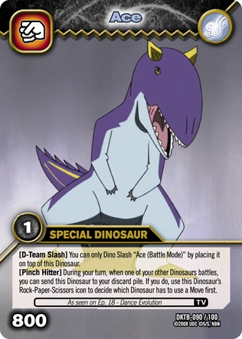 - Ace was the first main dinosaur of the D-Team to be defeated by the Alpha Gang, in his case by Terry in episode 3 (Chomp had only previously returned to his card from exhaustion after defeating Terry).