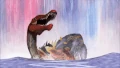 He is, however, afraid of water, which was shown first in Maui Owie!, where he refused to help Styracosaurus when battling at the beach. In All Fired Up! and Falls Alarm!, he manages to briefly overcome his fear to help Rex and defeat the rampaging dinosaur, but was shown to still have it later in A Kyoto Caper.