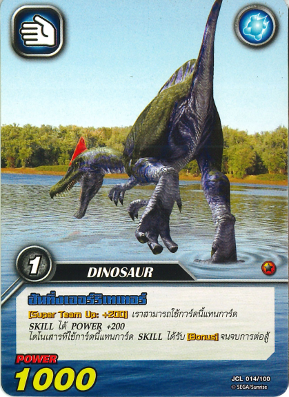 - [Super Team Up: +200] {translation uncertain} You can play this card as a Move that gives +200 Power. {Dinosaurs that use this card instead of a Move gain the ability [Bonus] until the end of the battle.}
