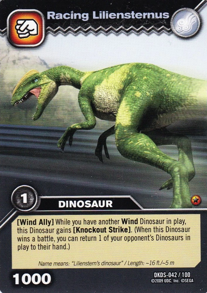 - [Wind Ally] While you have another Wind Dinosaur in play, this Dinosaur gains [Knockout Strike]. (When this Dinosaur wins a battle, you can return 1 of your opponent's Dinosaurs in play to their hand.)