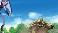 She is summoned against the betraying Seth's Saurophaganax alongside Spiny in Full Scheme Ahead, quickly being defeated by Fire Scorcher. After breaking the Alpha Gang out of the garbage chute, she is summoned alongside Ampelosaurus to fight Saurophaganax again in the next episode, but is defeated again. In the finale, she uses Earthquake in the Super Fusion Move against the Black T. rex, helping to defeat it after three hits. In the end, as she'd initially been turned into a card to preserve her species, she and the other dinosaurs are taken back to the future by Rex, the Ancients, and the Alpha Gang…