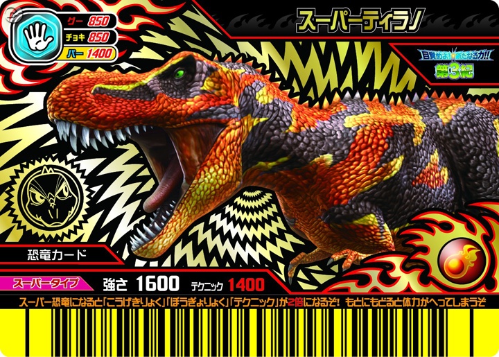 - Along with Super Chomp, Ace, Paris, Spiny, and Tank, he is one of the only Super Dinosaurs which was not available in the Kakushin 5th Edition Super Ω.
