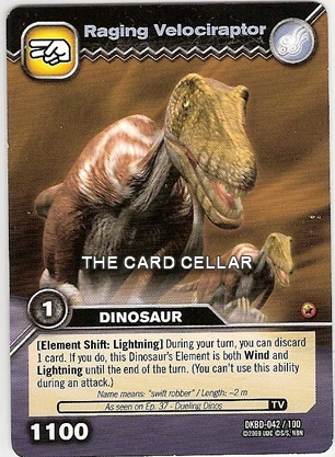 - Since the Velociraptors originally had no Element, it is unknown how, if possible, their card could have been activated if they had appeared as wild dinosaurs. It's also not clear what Move Cards they could have used, although it's possible that they could have only used Normal Moves.